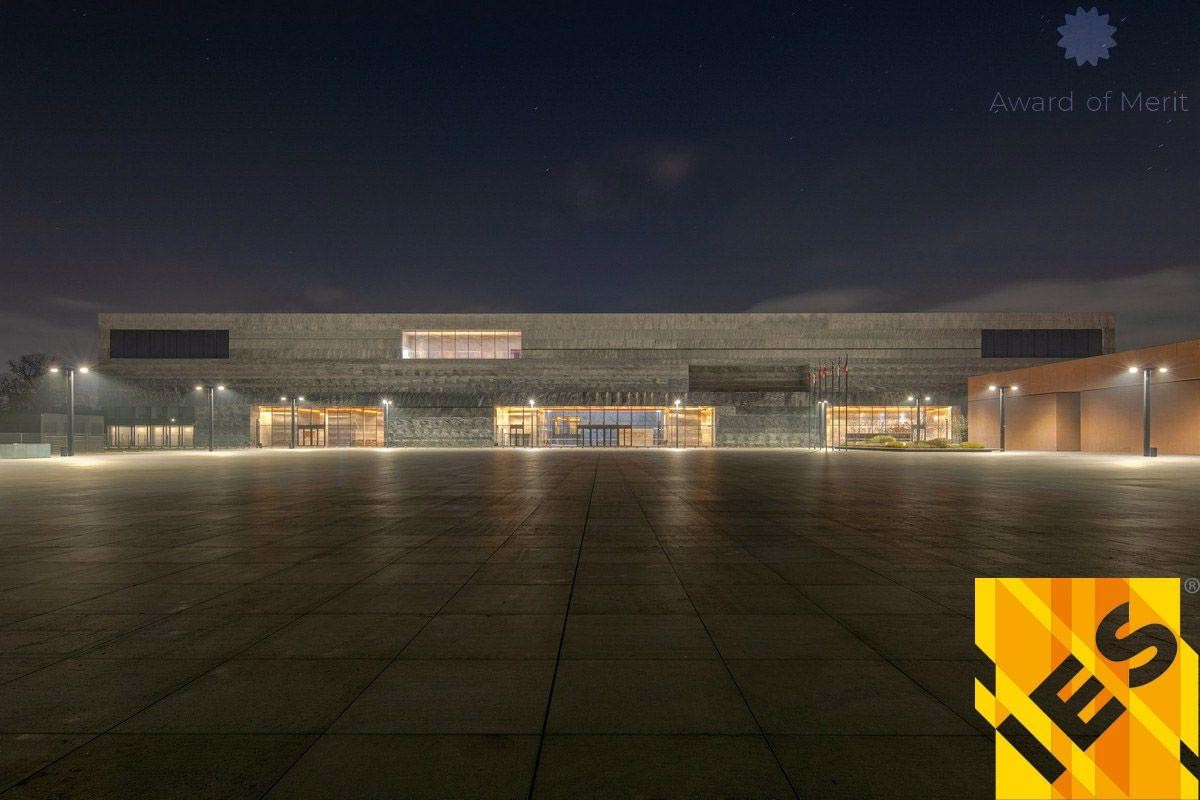 Oświetlenie monumentalnego gmachu nowego Muzeum Historii Polski w Warszawie zostało uhonorowane nagrodą Award of Merit amerykańskiego stowarzyszenia inżynierów oświetlenia Illuminating Engineering Society. Muzeum znajduje się na terenie dawnej Cytadeli Warszawskiej, rosyjskiej twierdzy i więzienia z czasów zaborów (XIX wiek). Budynek jest jedną z największych krajowych inwestycji ostatnich lat. Ta wspaniała placówka muzealna wykorzystuje najnowocześniejsze technologie do prezentacji ponad 1000-letniej historii Polski. Bardzo ważną częścią inwestycji jest projekt oświetlenia. Surowa architektura budynku daje ogromne możliwości oświetleniowe, a barwa i natężenie światła w poszczególnych obszarach stają się częścią opowieści. Główną zasadą przyjętą w projekcie oświetlenia jest konsekwentne operowanie skrajnymi temperaturami barwowymi światła, w zakresie od 2200K do 6500K. Przyjęta reguła dotyczy stosowania ciepłej barwy światła wszędzie tam, gdzie mamy do czynienia z „wnętrzem”, a zimnej – w przestrzeniach o charakterze „zewnętrznym”. Zasada ta obowiązuje już na placu przed wejściem do budynku – zimne światło dzienne wypełniające przestrzeń „zewnętrzną” skontrastowane jest z oświetlonymi ciepłym światłem wielkimi wnękami okiennymi, które zapraszają zwiedzających do owego 'wnętrza'. Budynek został uhonorowany wieloma prestiżowymi nagrodami w zakresie architektury i przestrzeni publicznej. Dziękujemy za owocną współpracę architektom z WXCA — autorom projektu MHP.