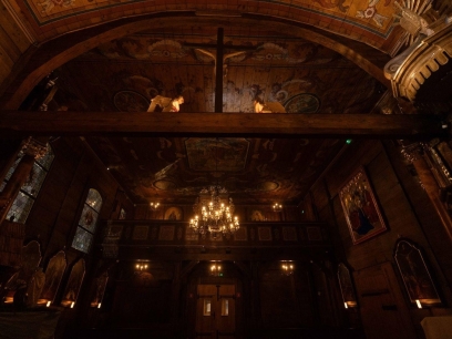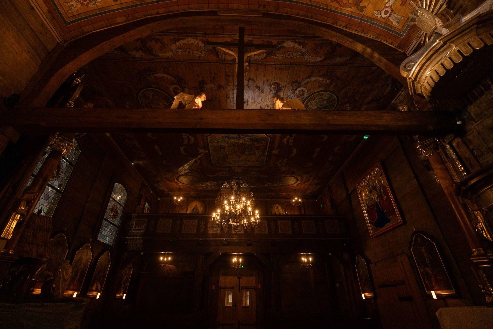 Sceny świetlne zmieniają wnętrze, które raz służy kontemplacji, raz wysłuchaniu koncertu, kiedy indziej odprawieniu mszy lub świątecznego nabożeństwa. Szczególną symboliką nasycone są sceny z niemal całkowicie wygaszonym wnętrzem, kiedy jedynym źródłem oświetlenia pozostają intensywne strumienie światła pochodzące z iluminacji zewnętrznej świątyni. Podkreślają one piękno witraży i malują na suficie zaskakujące, wielobarwne obrazy.
